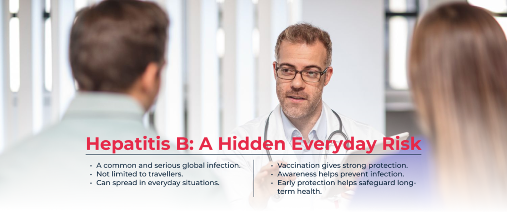 While travellers are at heightened risk—especially in regions with poor healthcare facilities or higher infection rates—Hepatitis B is also a local issue. You don’t need to board a plane to come into contact with the virus. Everyday activities and accidents can be sources of exposure.